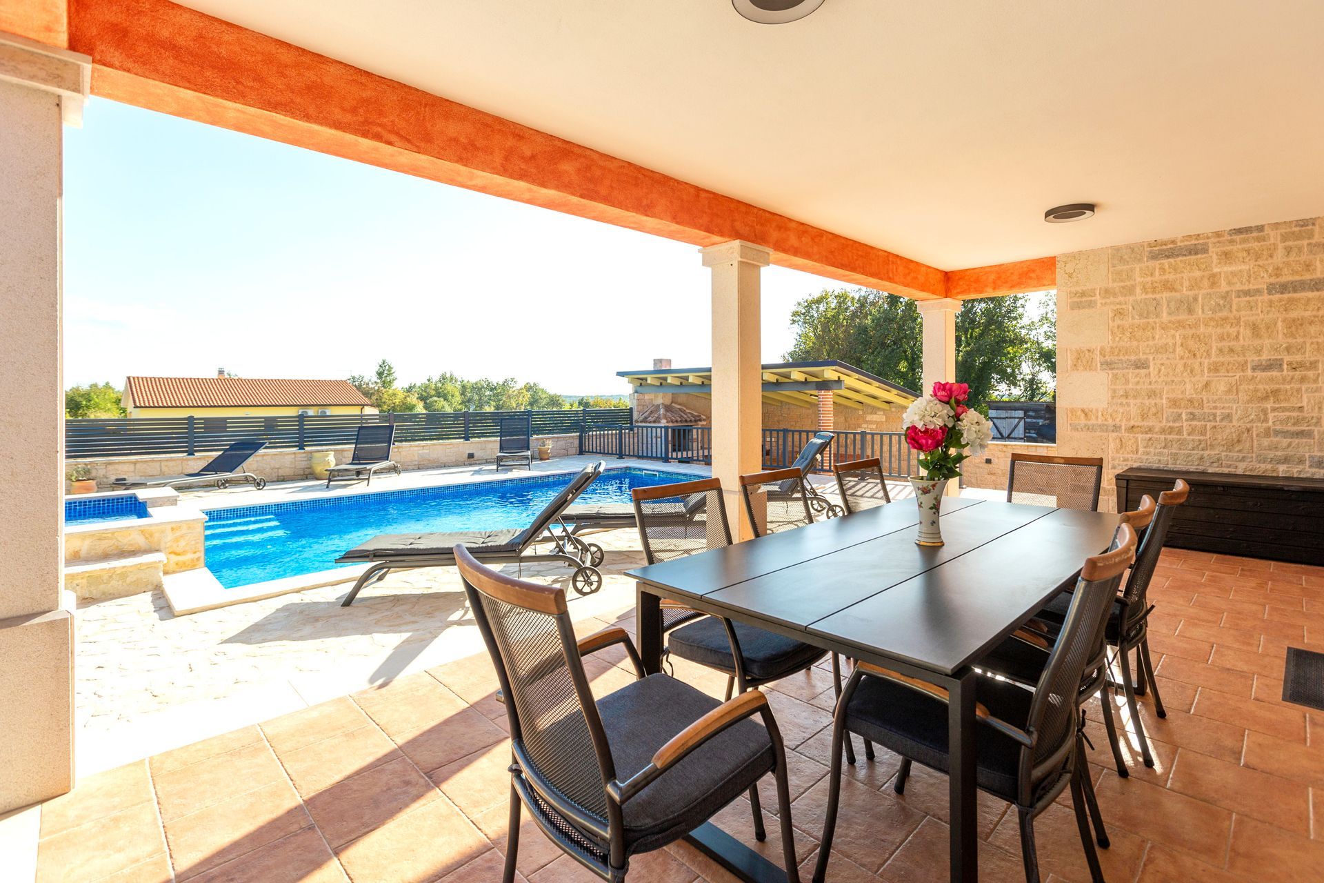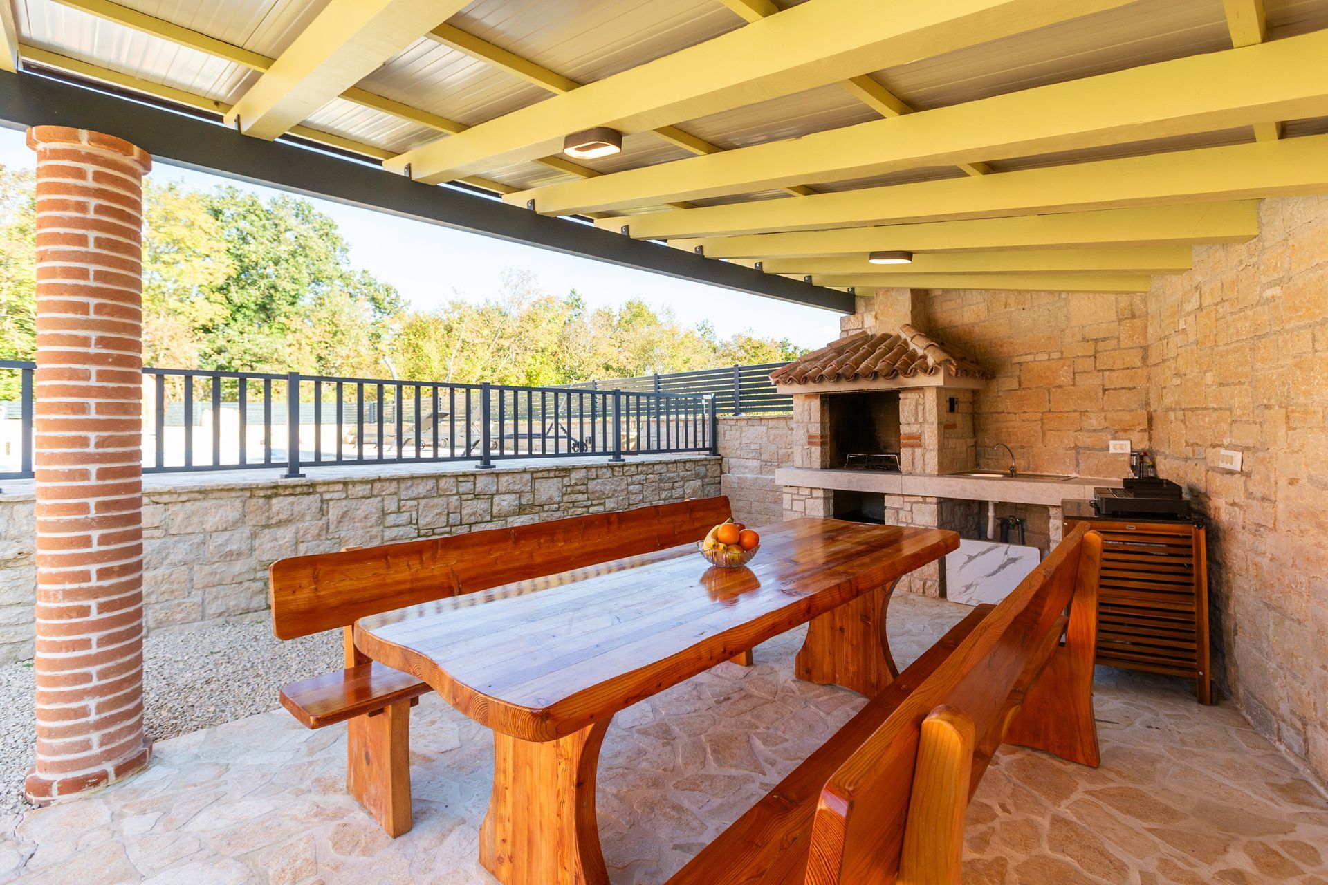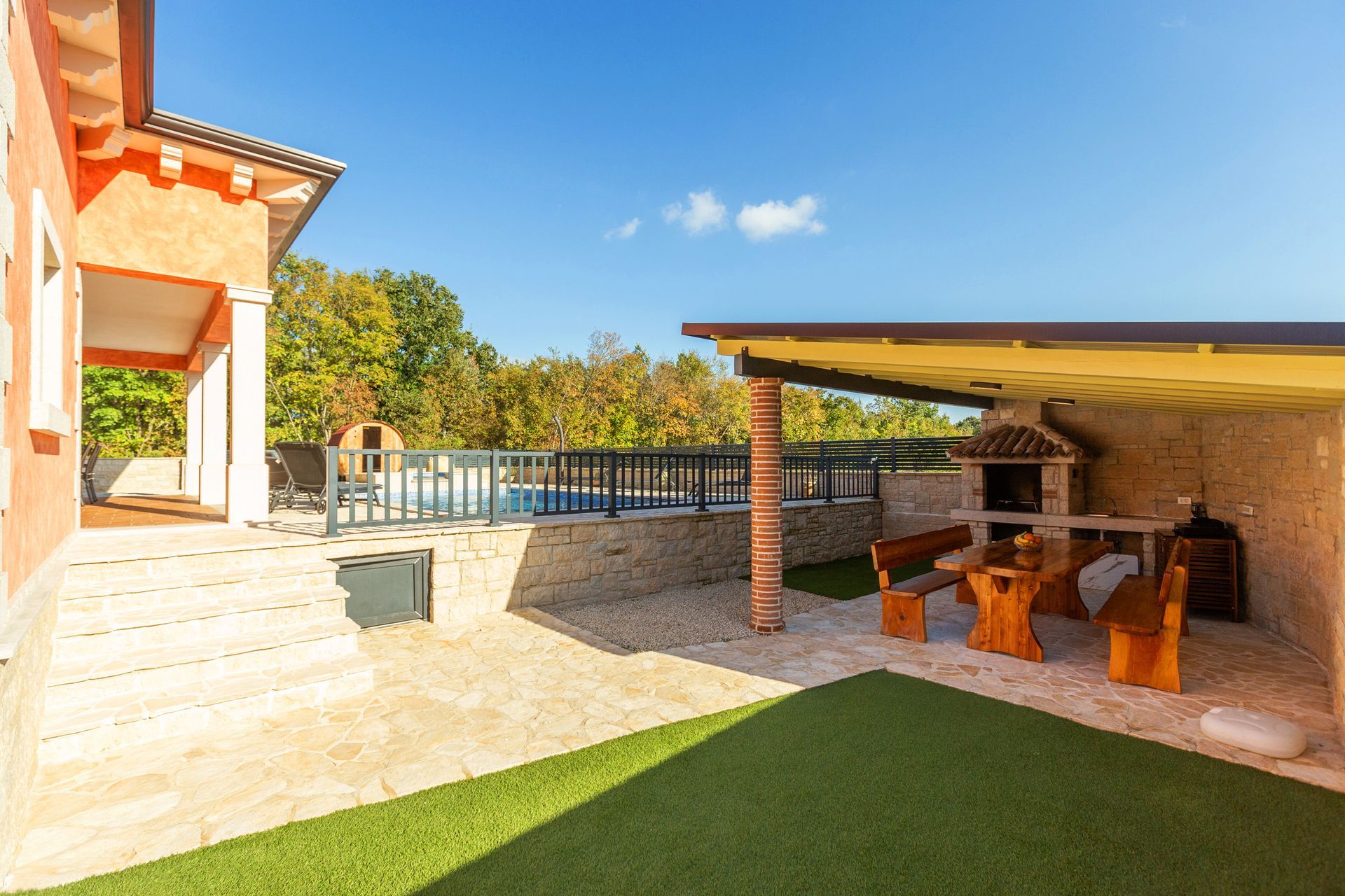 Die Villa verfügt außerdem über einen Swimmingpool, eine finnische Sauna und eine überdachte Terrasse mit einem großen Tisch für 8-10 Personen und zwei Arten von Grills (Elektro und Kohle).