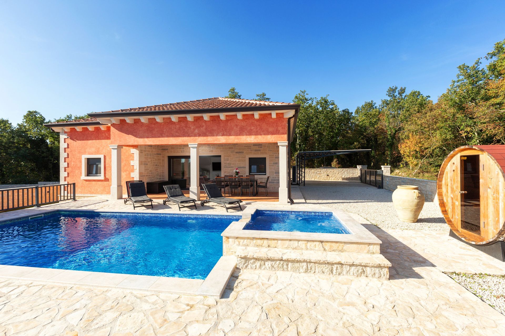 von Rovinj entfernt. Es erstreckt sich über zwei Etagen und hat eine Kapazität von 6-9 Personen. Die Villa ist voll klimatisiert und beheizt. Gesicherter Parkplatz.