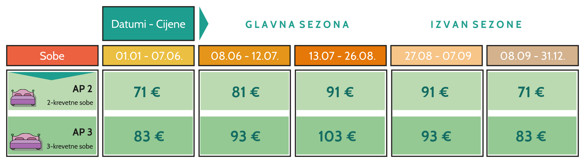 Cijena noćenja / apartmana