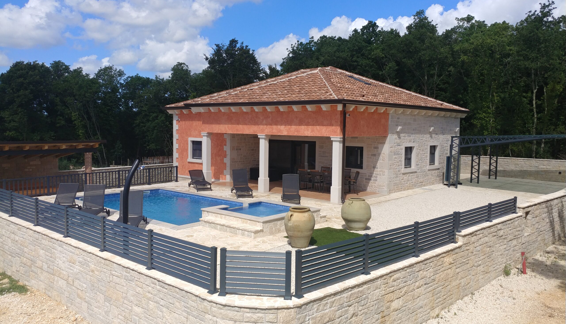 Villa dodatno ima bazen, finsku saunu i natkrivenu terasu s velikim stolom za 8-10 osoba te dva tipa roštilja (električni i na ugljen).