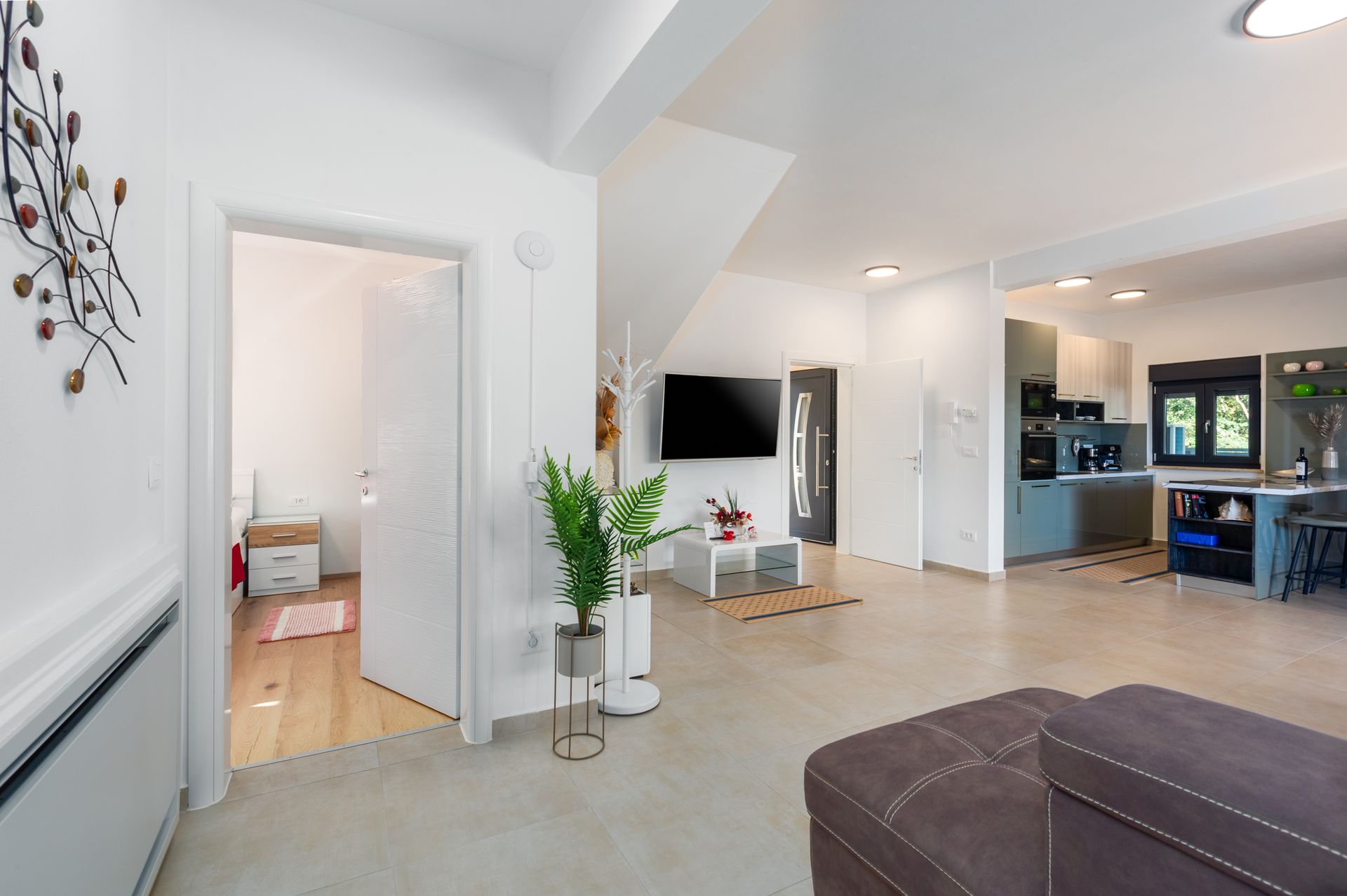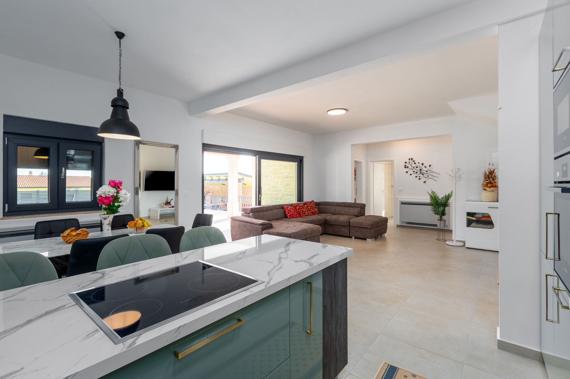 Suvremena i potpuno opremljena kuhinja s blagovaonicom i u produžetku vrlo udobnim dnevnim boravkom, doprinijet će ugodnoj atmosferi i vašem potpunom opuštanju.